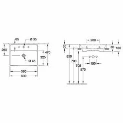 Villeroy & Boch Memento Waschtisch Mit Hahnloch 50 Cm Geschliffen Ohne Beschichtung