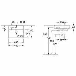 Villeroy & Boch Collaro Handwaschbecken 45cm Mit Hahnloch Ohne Überlauf Weiß Alpin Ohne Beschichtung