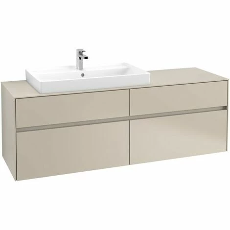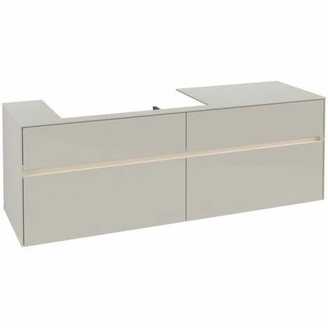 Villeroy & Boch Collaro Waschtischunterschrank 160cm Mit 4 Auszügen Und Variabler Beckenposition Soft Grey Mit Beleuchtung Links 80 Cm