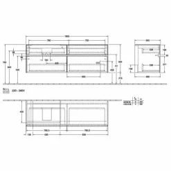 Villeroy & Boch Collaro Waschtischunterschrank 160cm Mit 4 Auszügen Und Variabler Beckenposition Truffle Grey Mit Beleuchtung Links 60 Cm