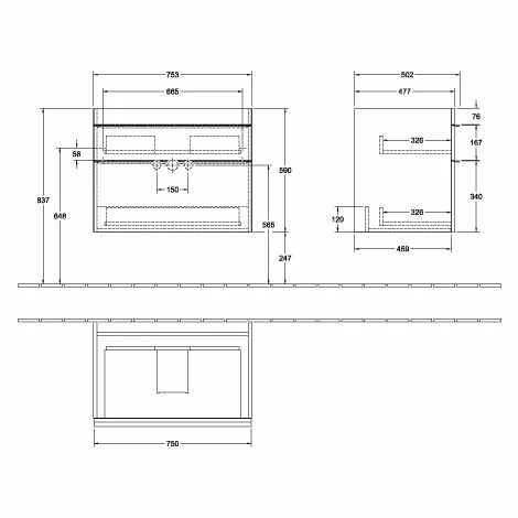 Villeroy & Boch Venticello Waschtischunterschrank XL Mit 2 Auszügen 75,3 Cm Arizona Oak Weiß